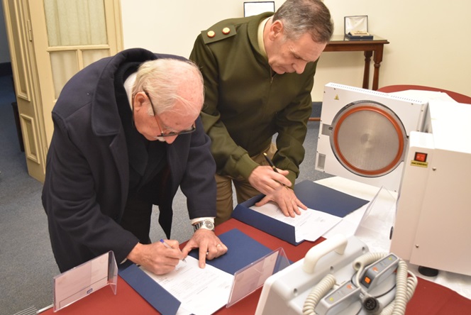 Estuvieron presentes el Director General de Salud, General de Brigada Omar Horacio Domínguez, el presidente del IAF, CP Francisco Adorni, el Presidente de la Fundación, Contraalmirante (R) VGM Pablo VIGNOLLES y el Director del IAF por el EA, General de Brigada (R) Fernando Cáneva.